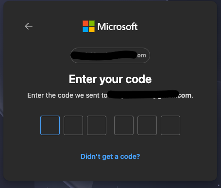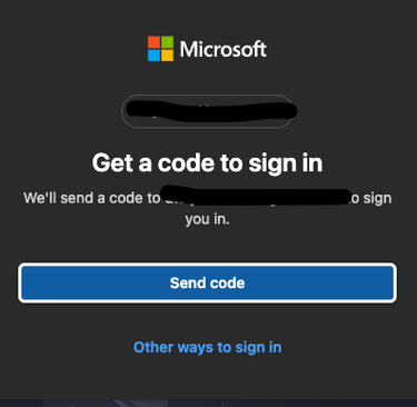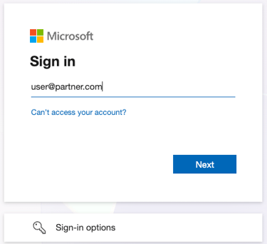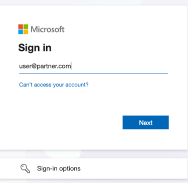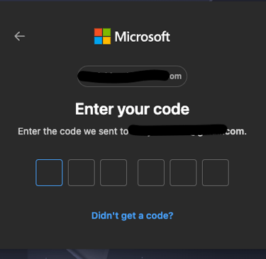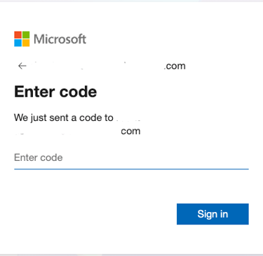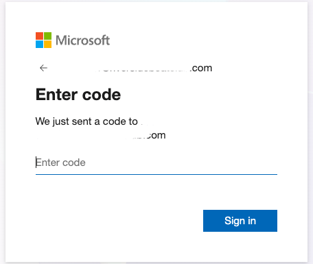 This button will take you to a standard Microsoft login screen. Simply input your email address, it does not need to be a Microsoft account. After inputting your email address you will be sent a OTP (One Time Passcode) to get to the next step.