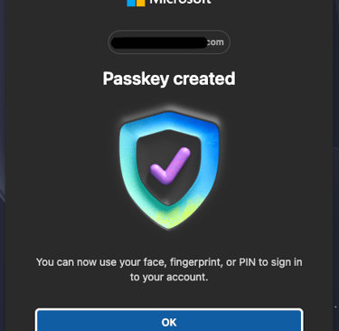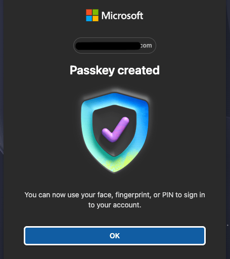 If your system is taking you through the passkey process, you should see a verification screen: