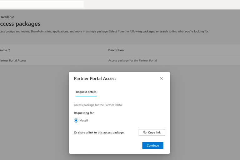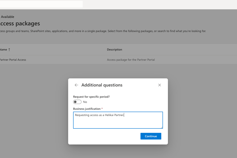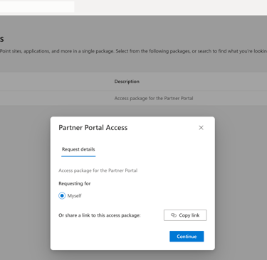 From here you will see a Partner Portal Access request page. Click 'Continue'.